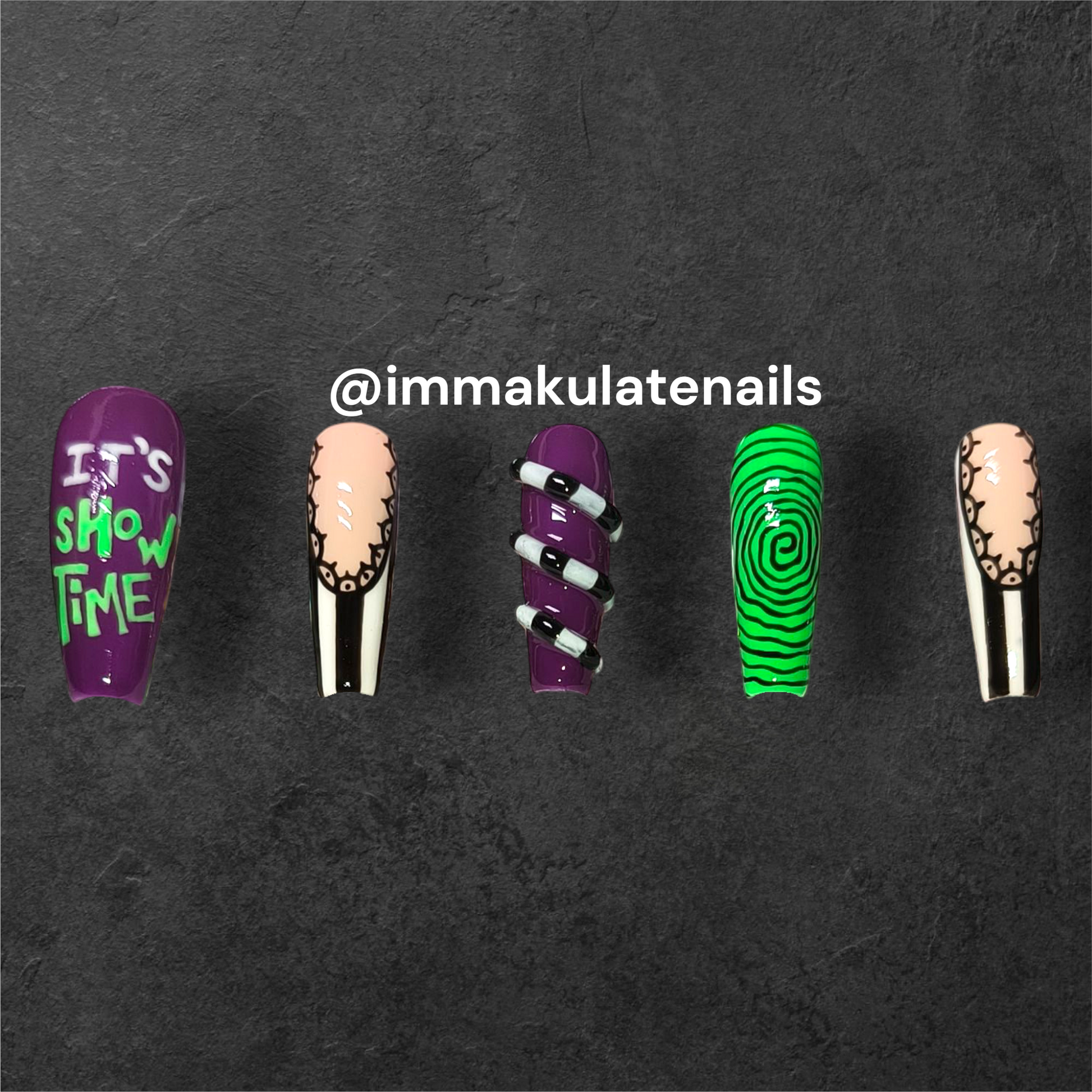 Beetlejuice, Beetlejuice, Beetlejuice - it's show time! Get ready to rock the trend with Beetlejuice nails, perfect for any funky occasion. Unleash your inner wild child with this playful and eye-catching addition to your nails. Say it three times and watch the magic happen! (But seriously, don't say it three times...)