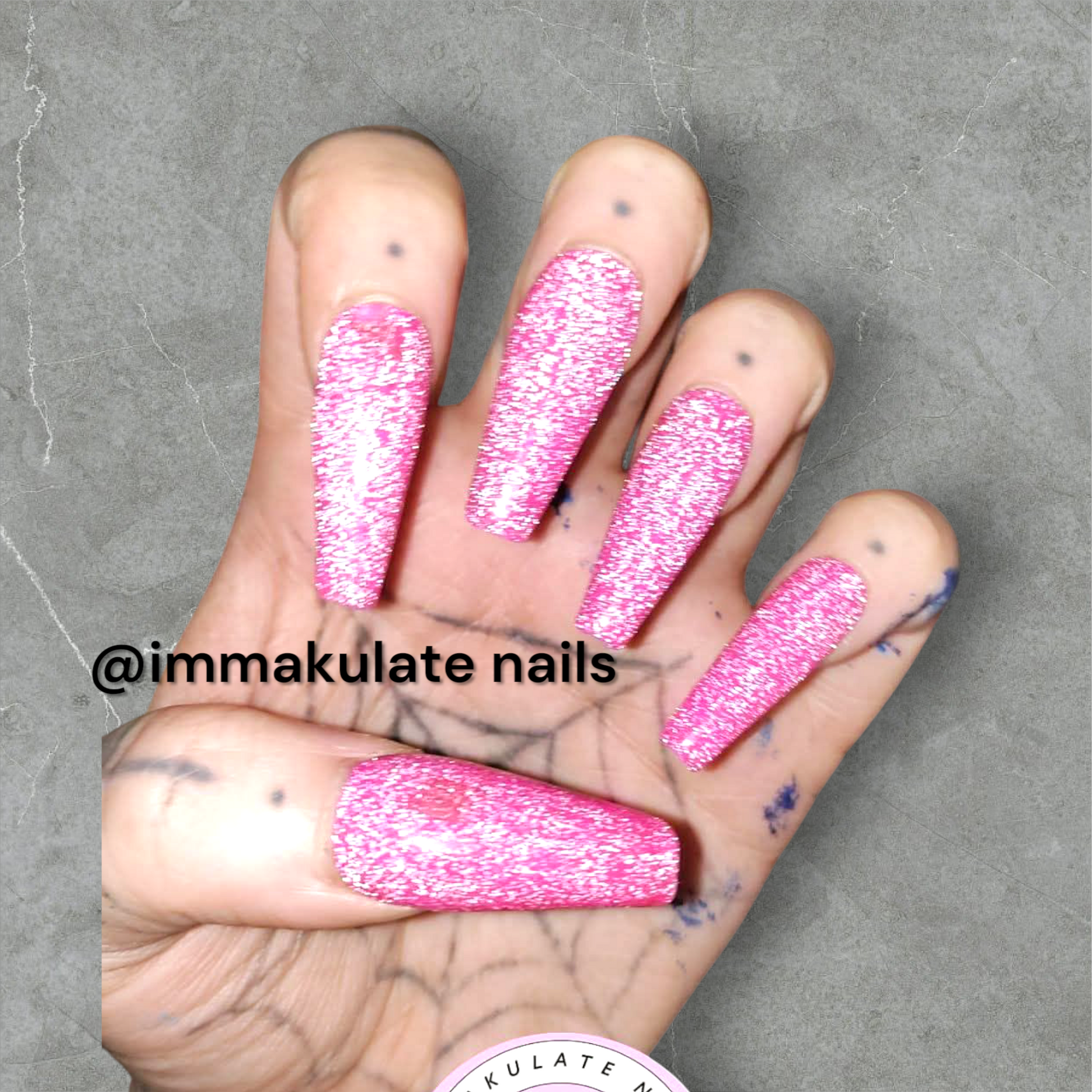 These nails will keep your fingers looking fab with their solid color design, including glitter! No need to stress about chipping or smudging, just play with confidence (and show off those hands)!