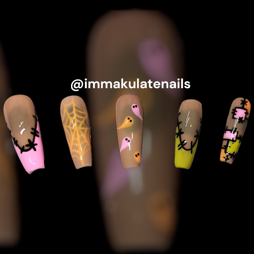 Get spooky with our tri-color Halloween nails. Transform your look in a snap! (No witchcraft needed). Perfect for a hauntingly good time. Boo-tiful nails guaranteed.